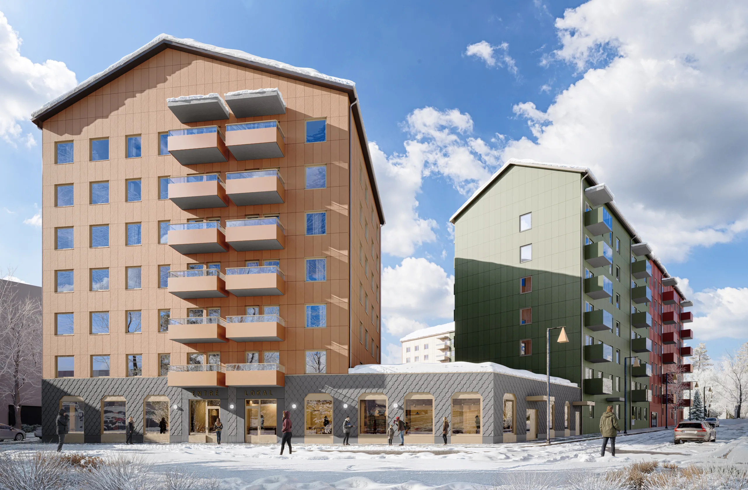 På uppdrag av LKAB bygger Lindbäcks Bygg ett kvarter i Kiruna centrumkärna med 177 lägenheter och 4 lokaler.