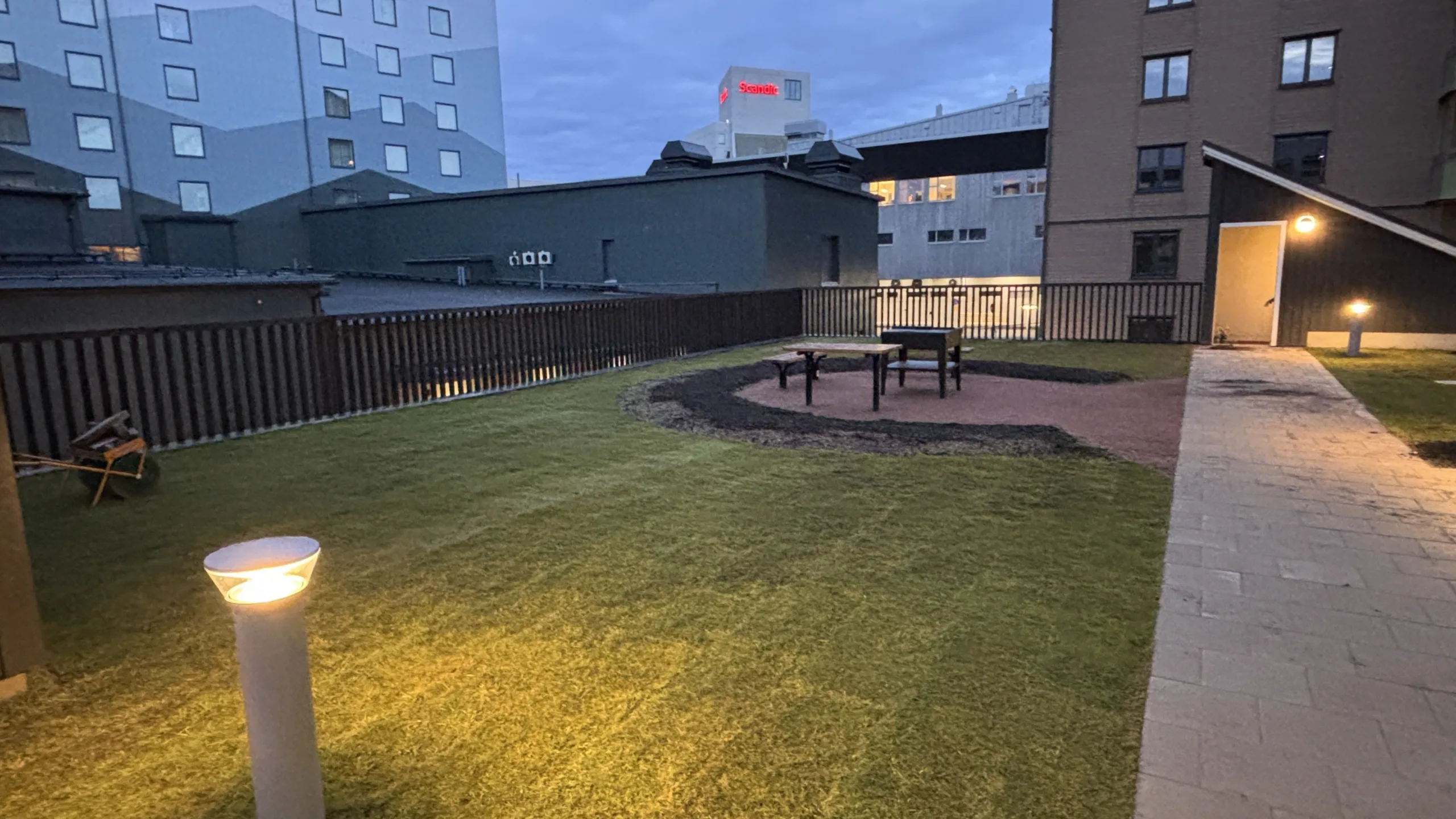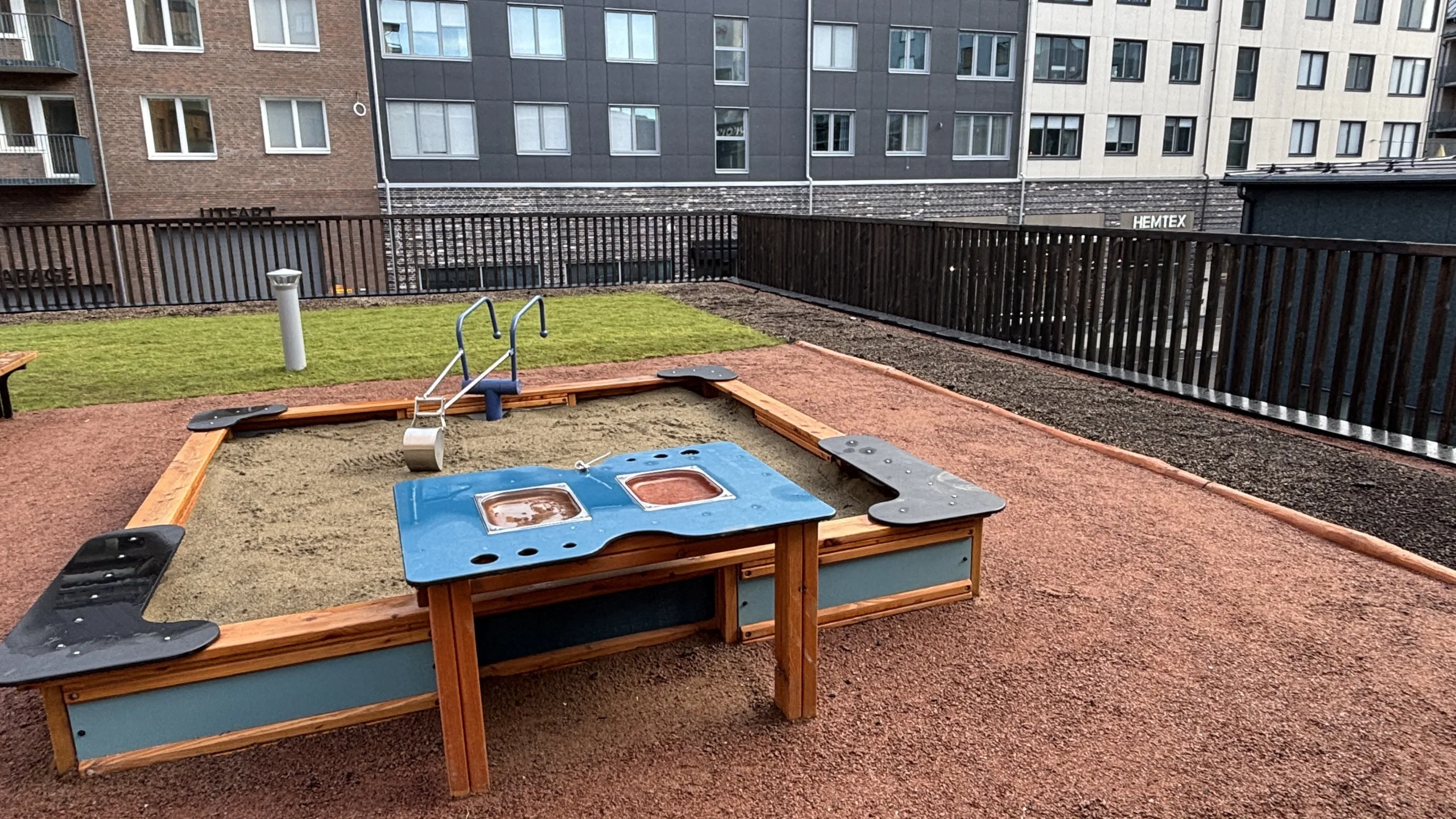 Utöver gemensam tvättstuga och bastu finns förråd för cyklar/barnvagnar/rullstolar och ett miljöhus i en fristående byggnad på gården. På gården finns även en grillplats och en lekplats.