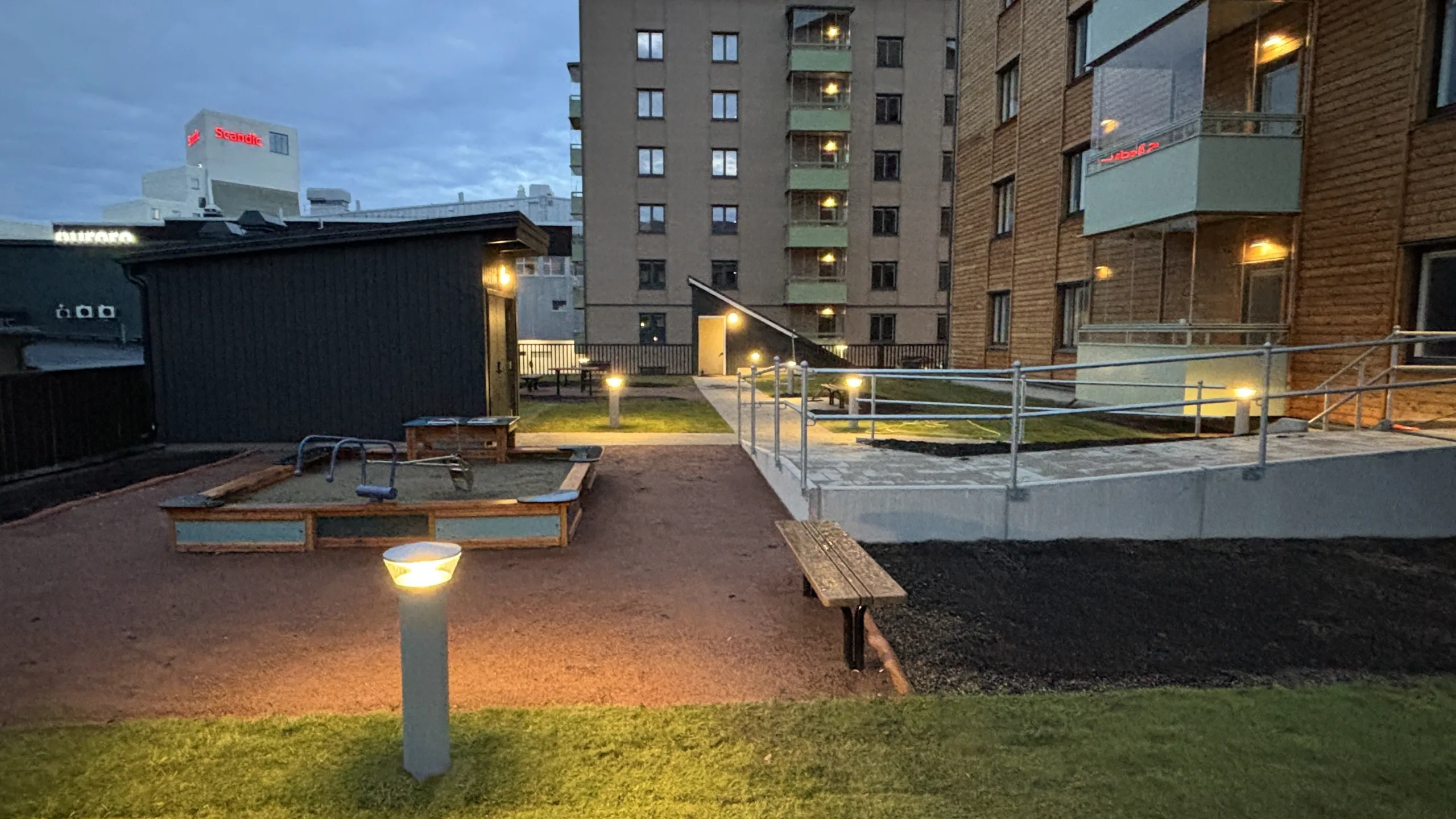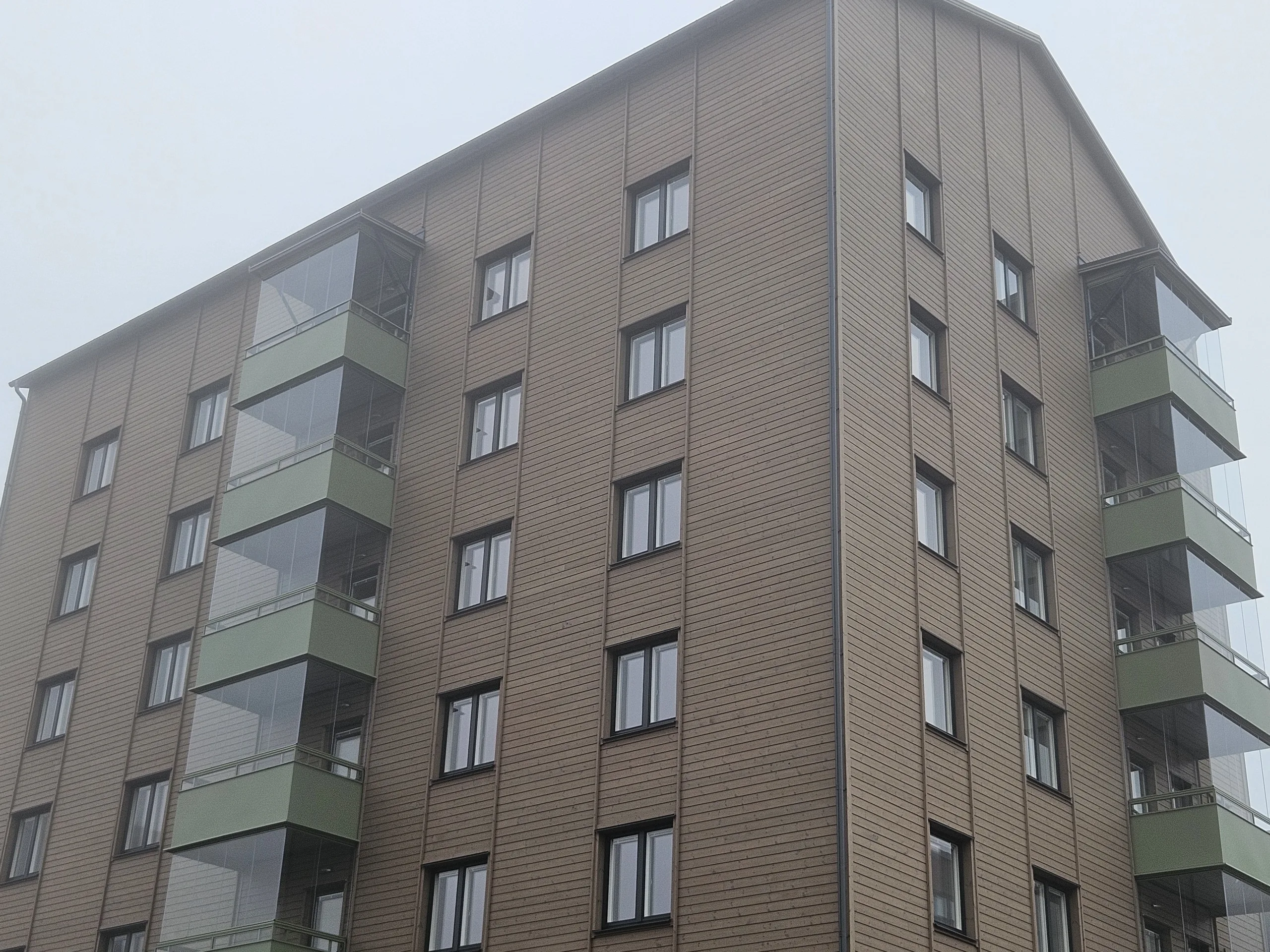 Mitt i centrum har LKAB byggt två sjuvåningshus med totalt 54 moderna lägenheter med inglasade balkonger. Entreprenör: Lindbäcks Bygg AB