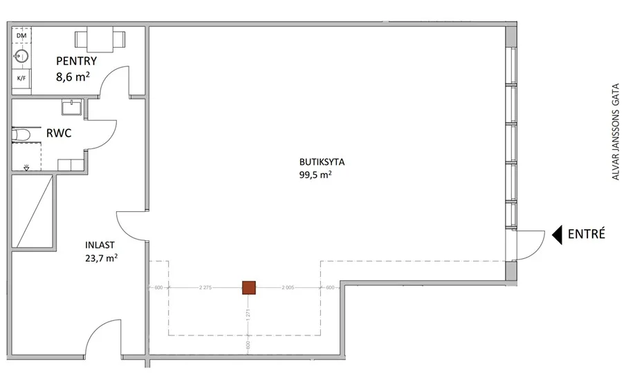 Butikens yta: 100 kvm + lager/pentry WC 39 kvm